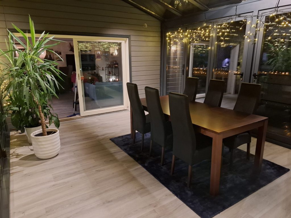 dager. Vi er strålende fornøyd med å ha vårt første juleselskap i ny vinterhage, smiler Hege og Arild.