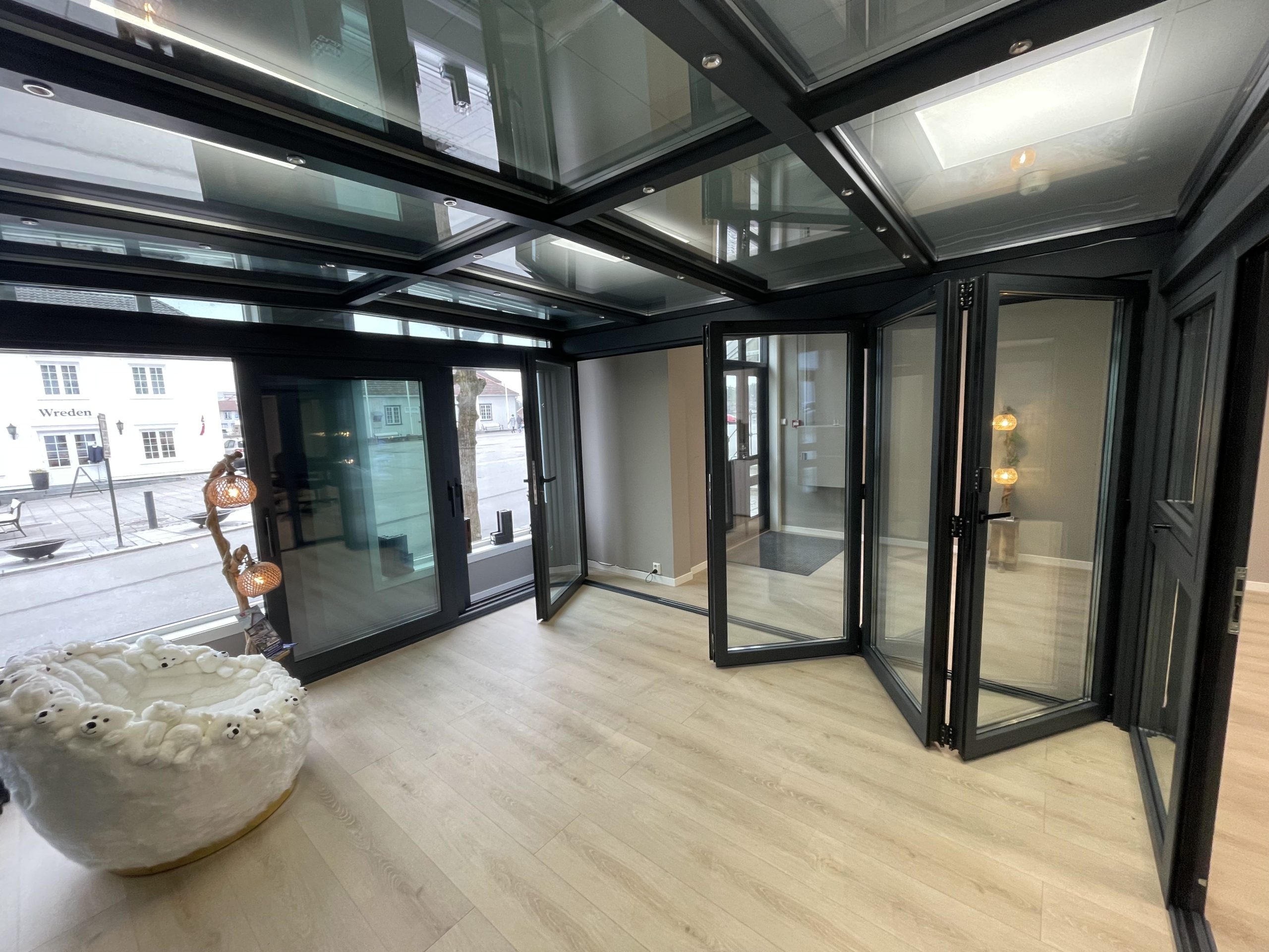 Om du ønsker skyvedører eller et system med foldedører. Fast glass eller skyvevinduer. Integrert led- lys i tak. Dette og masse annet kan vi hjelpe deg med.